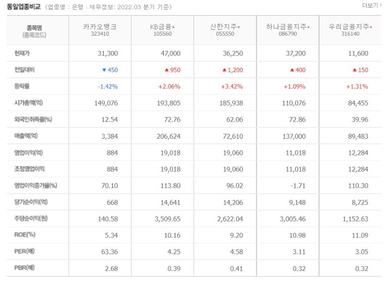매년 3~4조원 이상의 순이익을 기록하는 국내 대형 금융지주사들과 비교했을 때, 카뱅의 주가는 아직 비싼 수준으로 볼 수 있다.