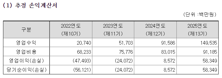 기존 루닛 증권신고서에 따르면, 매우 긍정적인 전망을 바탕으로 작성하는 증권신고서임에도 불구하고 22,23년도 약 800억원에 달하는 순손실이 예상되며, 24년도에나 흑자 전환이 가능할 것으로 기재되었다.