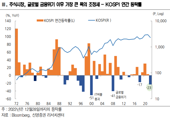 2022년 한해는 미국의 S&P500, 한국의 코스피/코스닥을 포함해 주요 국가 주식이 연초 고점 대비 대...