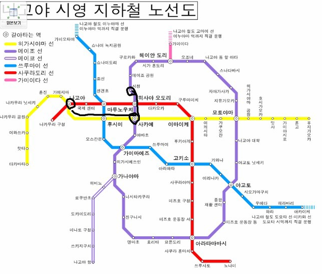 (왼쪽 하단에 위치한 노선이 메이코선이고, 종착역이 나고야항역이라 대중교통 이용이 어렵지 않다)