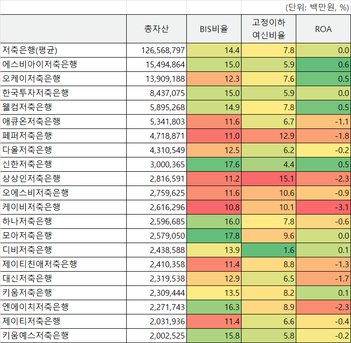 참고를 위해 전체 저축은행 평균 수치도 함께 표기해놓았다.