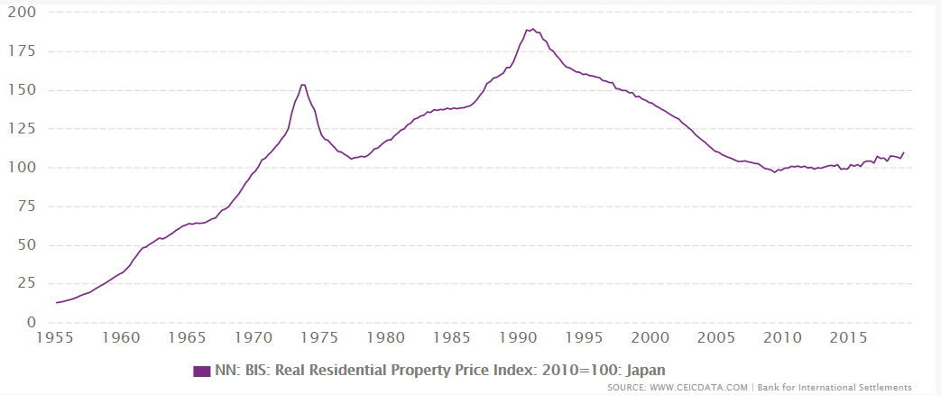 플라자 합의 -> 엔고 -> 수출 경쟁력 하락, 내수 증진을 위해 저금리 기조 -> 급격한 자산 가치 상승으로 인한 버블 -> 이후 중앙은행의 급격한 금리 인상 -> 80년대 말 버블 붕괴로 인해 부동산 포함 자산가치 폭락
