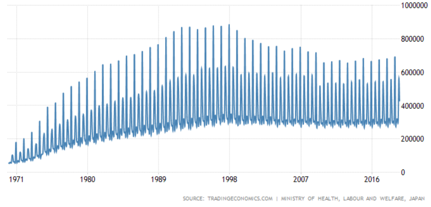 - 95년 이후 20여년에 걸쳐 만성적인 물가 하락세를 보이고 있음