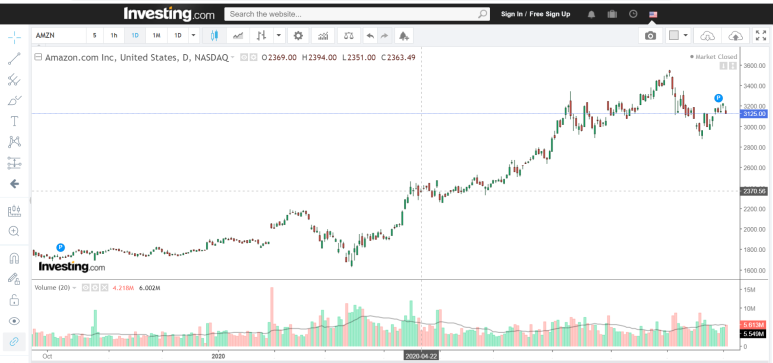 내가 투자한 시점 이후로 미국 기술주 지수인 NASDAQ은 최근의 조정장 전까지 30% 이상 상승했고, 대장주인 APPLE과 AMAZON은 각각 고점까지 약 100%, 50% 이상씩 상승했다.