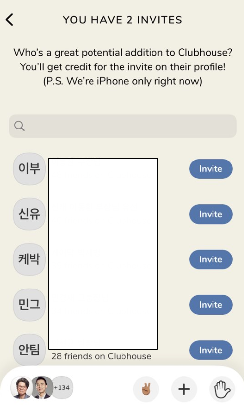 이전 글에 쓴 것과 같이 기본적으로 클럽하우스는 초대장(invites)을 받아야 입장이 가능하다.