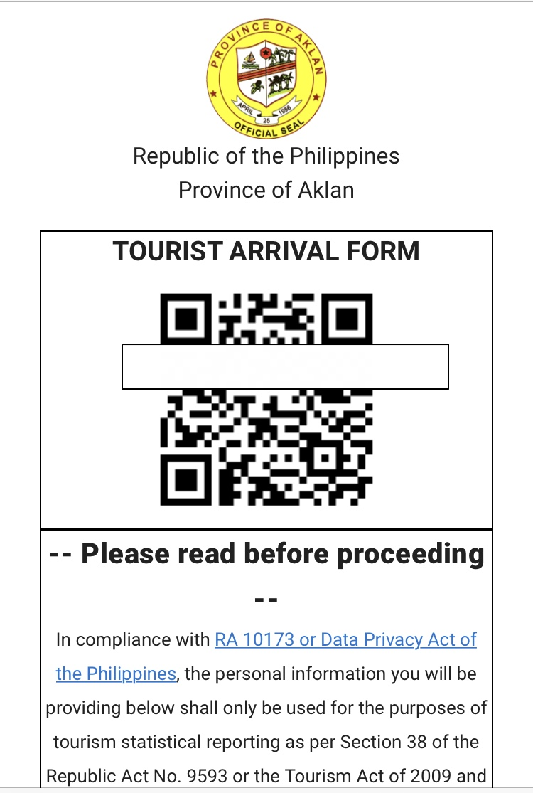 5. (보라카이 입도시 필요)Tourist Boracay QR코드 생성 - 스크린샷 캡처